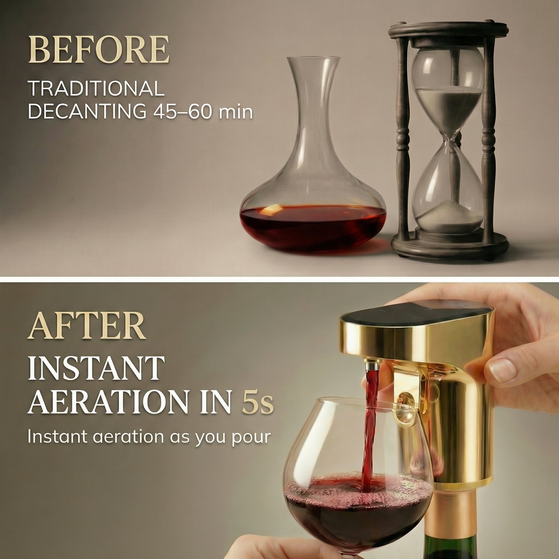 No decanter. No waiting. Just attach, pour, and taste the difference from the very first sip.